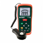 Este dispositivo portátil mide hasta 40,000 Fc (400,000 lux) mediante un sensor de luz remoto, conectado a través de un cable en espiral de 30 cm, extensible hasta 60 cm (12 a 24 pulgadas).
