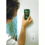 El medidor utiliza tecnología electromagnética para indicar rápidamente el contenido de humedad de la madera y los materiales de construcción. Seleccione entre 10 tipos de madera y rangos de medición. La pantalla LCD muestra el % de humedad de la madera o el material que se está probando. Tiene una profundidad de medición de 22 mm (0,75 pulg.) por debajo de la superficie. El medidor también cuenta con una prueba y calibración internas automáticas e indicador de batería baja.